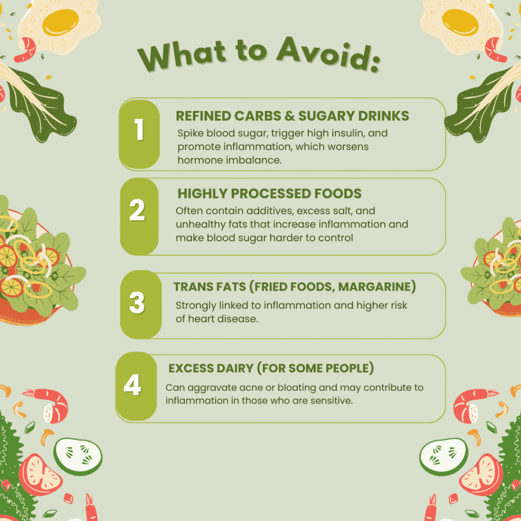 when it comes to diet , I want you to think of its more of balancing the blood sugar, reduce inflammation and support healthy hormone levels